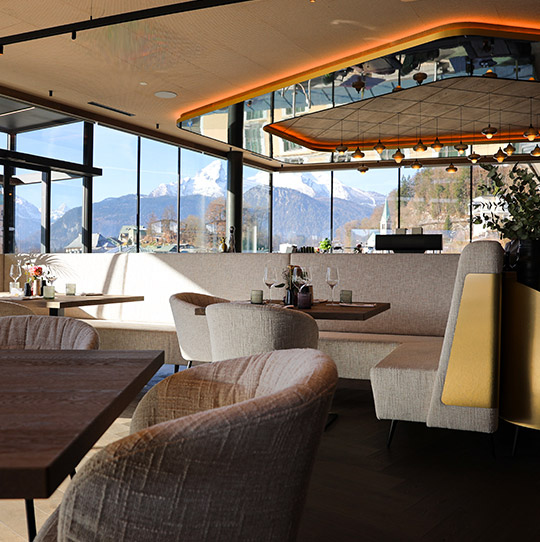 From Wiener Schnitzel with a Watzmann view, to smashed burgers made from alpine beef, to crème brûlée overlooking Berchtesgaden – our menu has something for every taste. Pair it with a glass of wine, finish with a digestif or a cocktail – good vibes always come with the view.